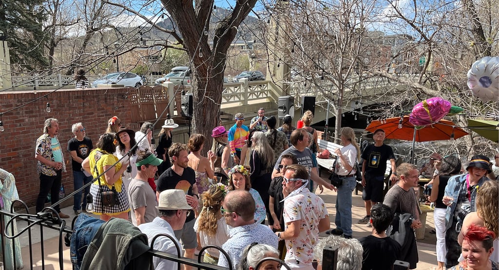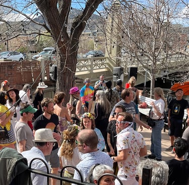 The inaugural April 2024 Spring Shimmy was a blast! Our DJs Queen of Air, Earth, and Bounce kept the dance floor bumpin' all afternoon. The staff of the Riverside kept us hydrated with great cocktails and delicious food. All in all it went great for our first event. (The weekend after the Shimmy it snowed so we got real lucky with the weather.)